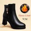 Women's Autumn/Winter High-Heeled Short Boots with Chunky Heels and Fleece Lining