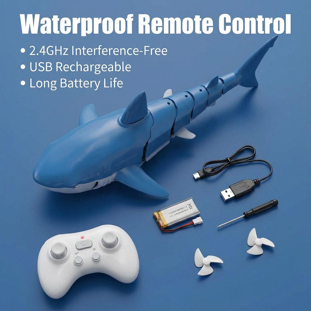Realistic Movement: Designed with a flexible, multi-jointed mechanical tail, this RC shark swims freely in the water just like a real shark. It supports 360° rotation and multi-directional movement.