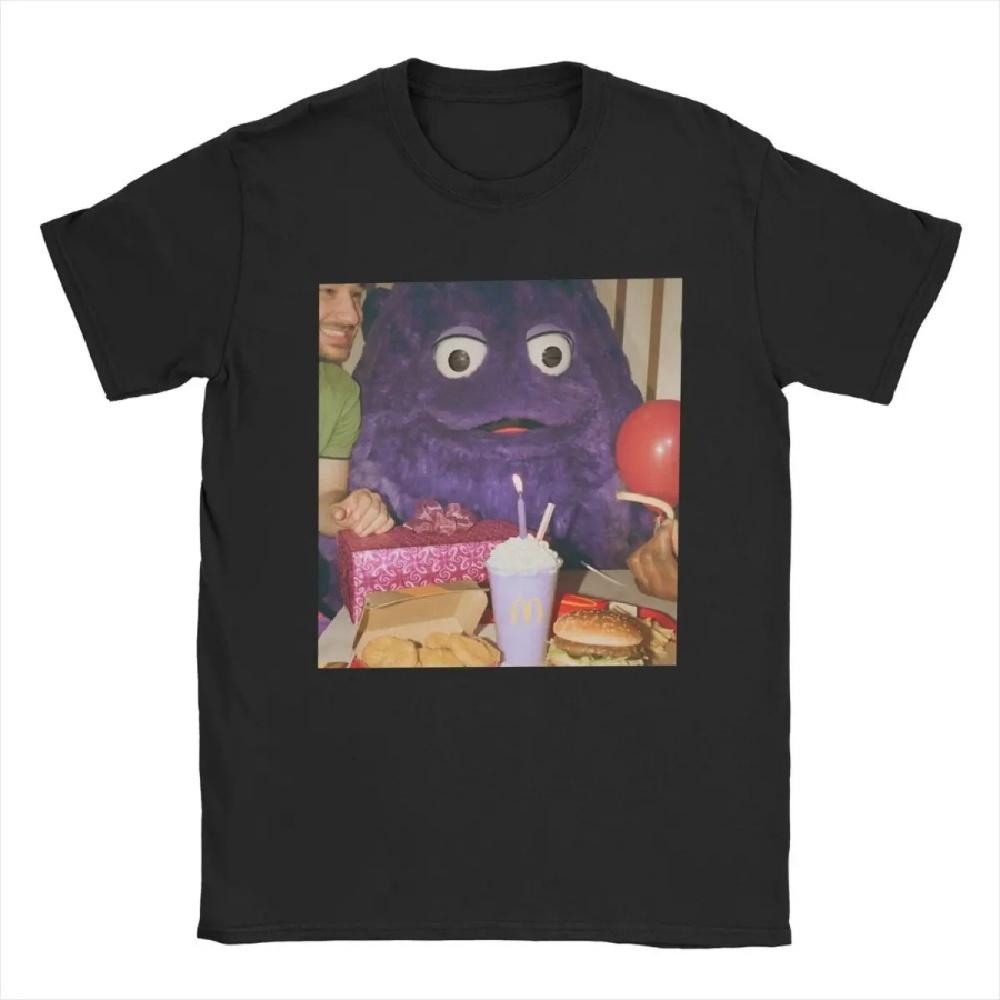 Creepiest Grimace Birthday Men's T Shirt Casual Tees Short Sleeve Round Neck T-Shirt Pure Cotton Printing Tops