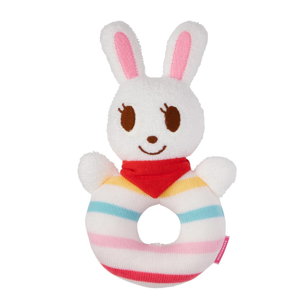Miki House Rattle, Made In Japan, Bear and Rabbit Squeeze Toy, Baby Toy for Boys and Girls, Baby Gift, 16-1667-148, White