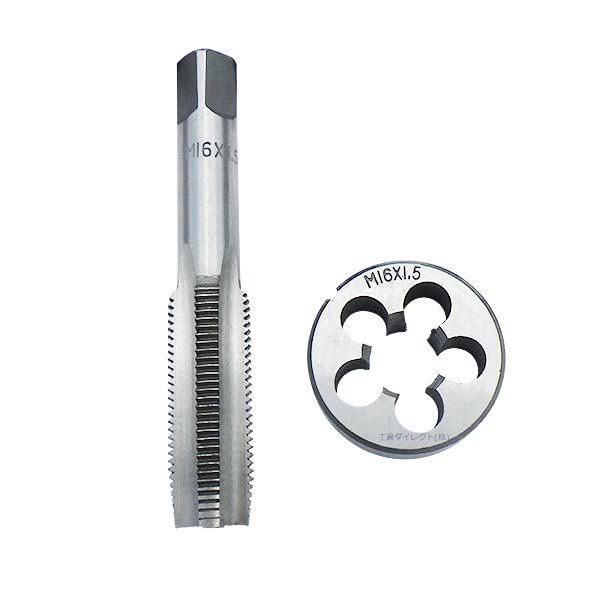 ■ Tap and Die M16x1.5 ■ Thread outer diameter: 16mm, pitch: 1.5mm. ■ Die diameter: 38mm. Please use the dedicated handle for 38mm diameter taps. ■ Tap length: Approx. 95mm, Base width: Approx. 10mm ■ Die thickness: Approx. 13mm ■ Weight: Tap: Approx. 83g, Die: Approx. 60g ■ This is a tap and die set (not sold separately). ■ This set is conveniently sized for machine maintenance, DIY, and automotive repairs. ■ For resharpening, follow the standard procedure: apply lubricant, rotate 180 degrees, then return 90 degrees. ■ While it is possible to cut threads from relatively soft metals without using a pilot hole tap, it is best used for resharpening extremely hard steels. Please refrain from purchasing if you are looking for Japanese-made quality or are concerned about the condition of the product. We do not accept returns or exchanges, even for reasons such as the product not fitting the intended use. Please refrain from using images or product descriptions from our company, Tool Direct Co., Ltd. (To prevent image reproduction, our company name is included on product images, but it is not included on the actual product.)
