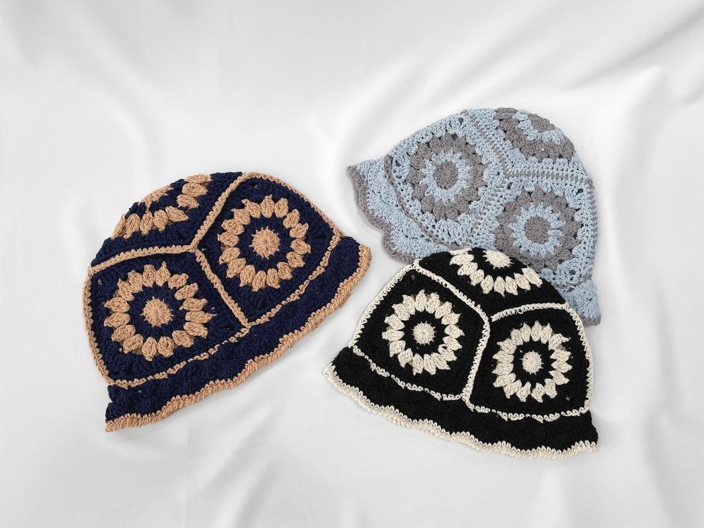 Women's Unisex Flower Knit Bucket Hat Cotton Bucket Hat