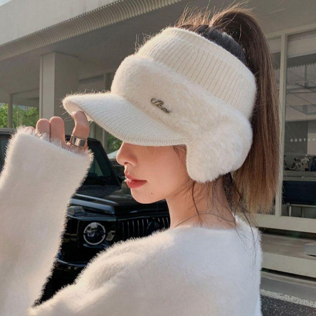 Knit Fur Winter Earflap Brim Hat for Sports Hiking and Outings