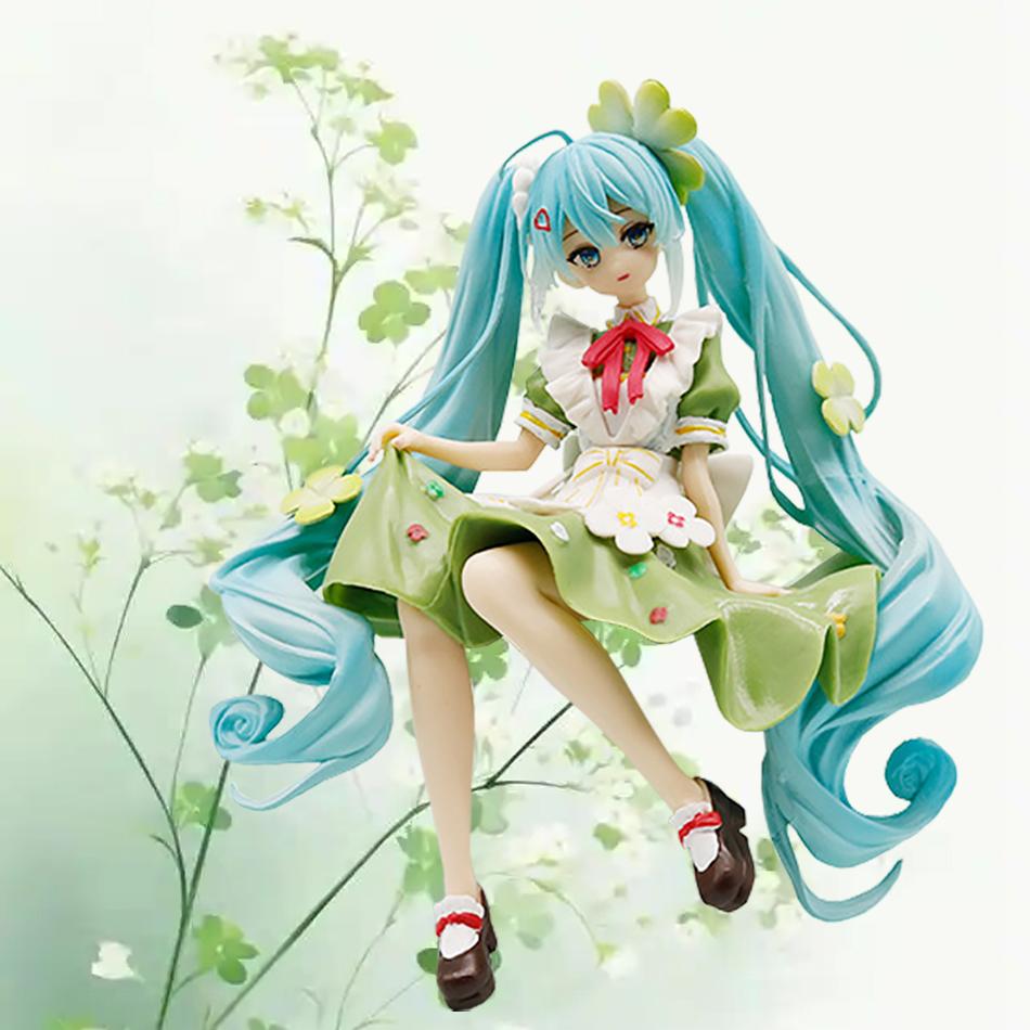14cm Cute Four Leaf Clover Flower Fairy Miku Figure Anime Proportional Humanoid Model Toy Gift Collection Ornaments PVC