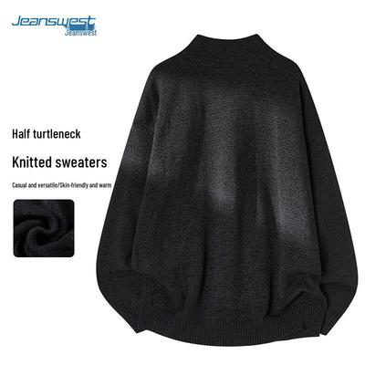 JEANSWEST Men's Pullover Semi-High Collar Thickened Knit Sweater