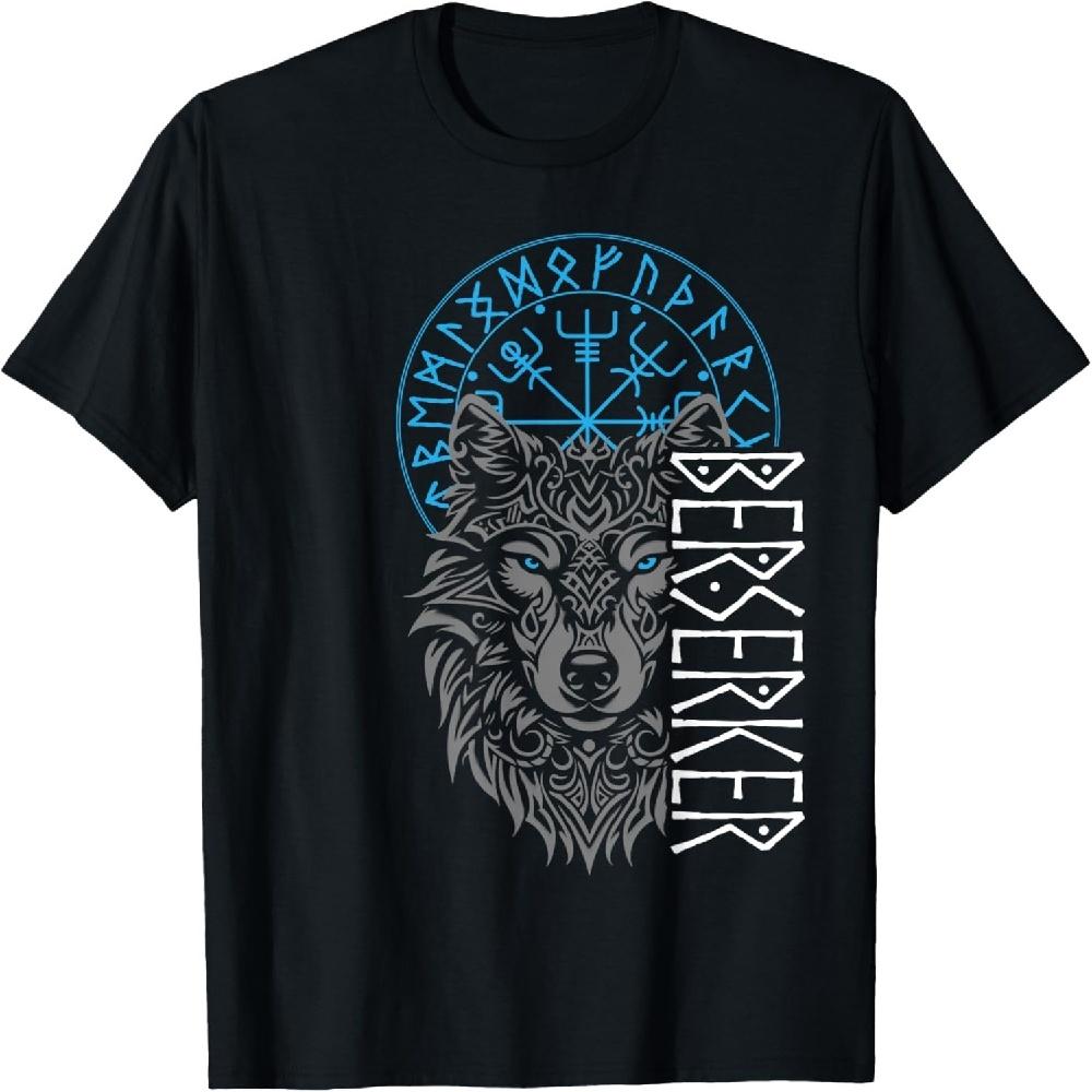Berserker & Viking Compass - Nordic Wolf Design T-Shirt, Small, Black