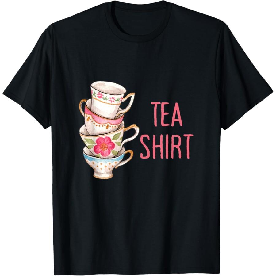 TEA SHIRT PUN Cute And Fun Teacups In A Tall Pile Of Cups T-Shirt(1)