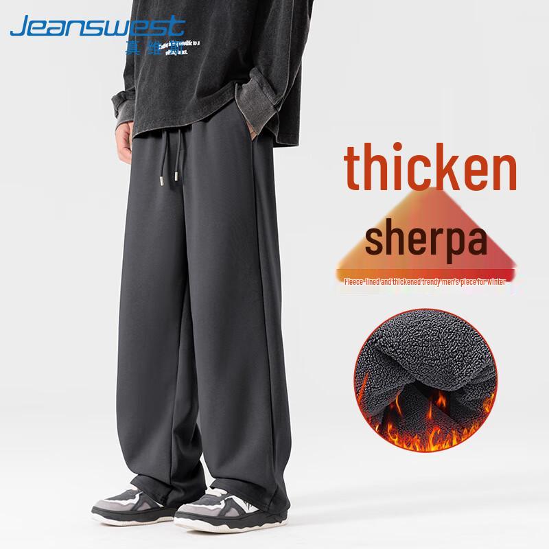 Jeanswest Men's Winter Fleece Lined Loose Wide-Leg Trousers