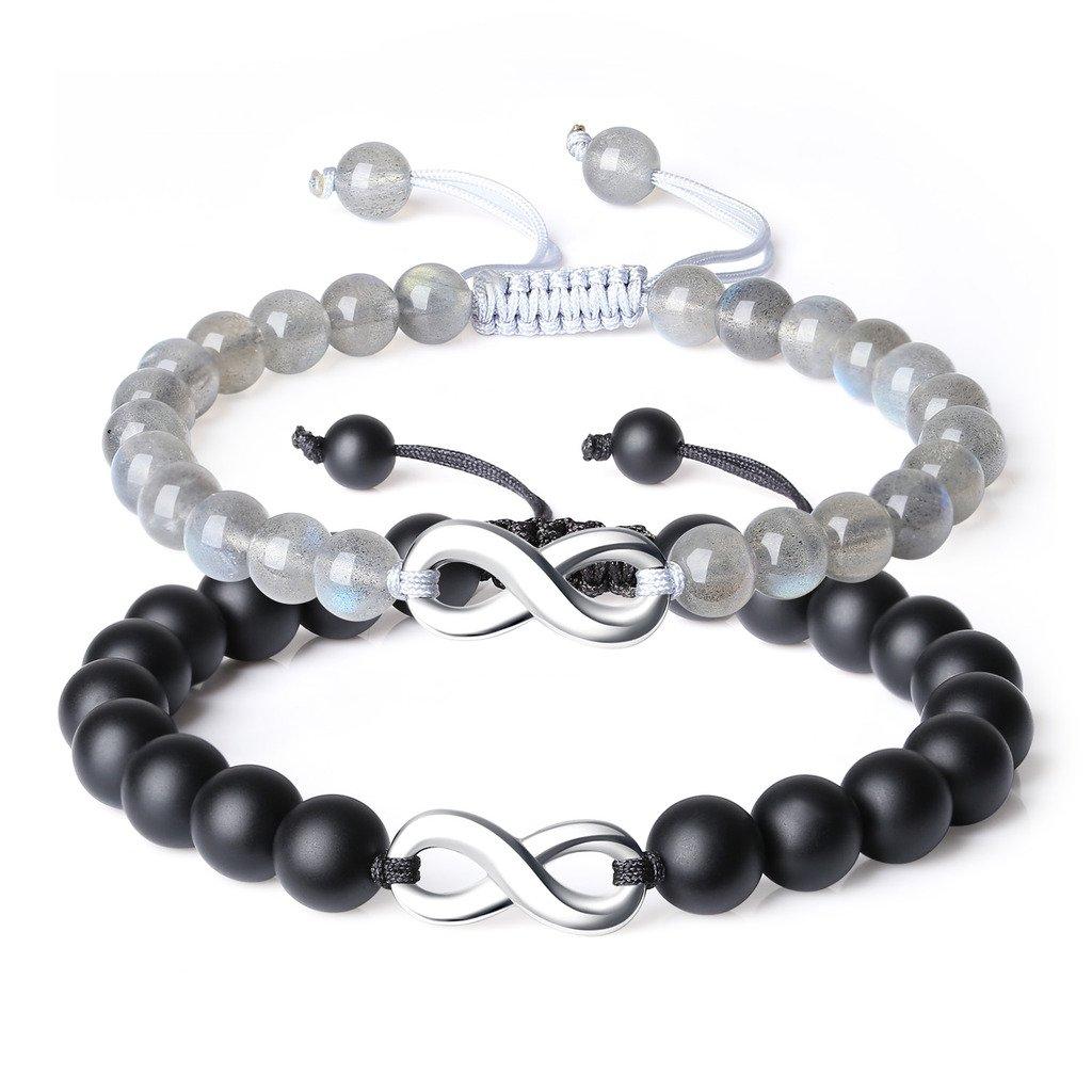 Koai Matte Onyx Labradorite Infinity Pair Bracelets for Men and Women