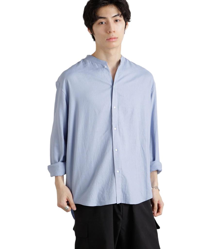 Nano Universe Anti-Smell Linen Band Collar Long Sleeve Shirt, Men's, Size S (115cm), Sax (Product Code: 672-5120208)