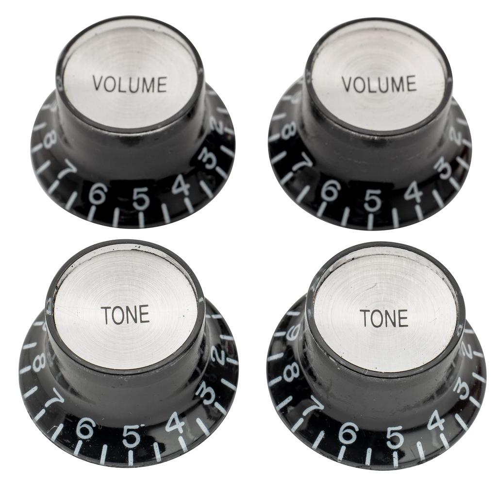 Musiclily Pro Left-Handed Inch-Size 2 Volume and 2 Tone Reflector Knobs for USA Les Paul and SG Guitars, Black/Silver Top (Set of 4)
