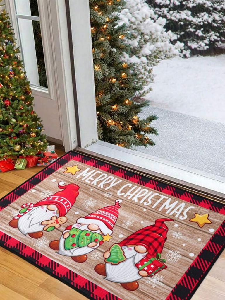 VIKAMA Christmas Crystal Velvet Floor Mat Washable Entry Welcome Door Mat Kitchen Living Room Carpet Home Christmas Decoration