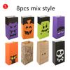 8pcs Halloween Flat Mouth Kraft Paper Bag Cute Cartoon Pattern Pumpkin Skull Spider Web Party Gathering Candy Storage Bag TMZ