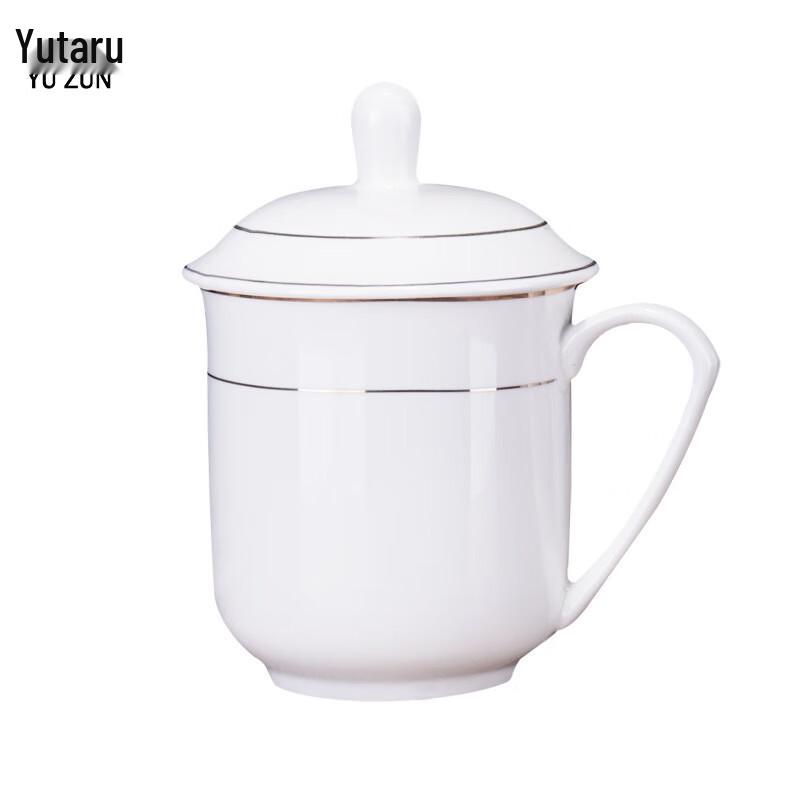 YUZUN Gold-Rimmed Ceramic Tea Cup with Lid