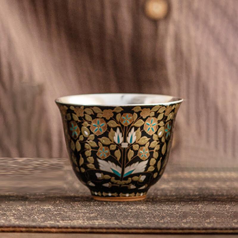 Zheng Wenqiang Artisan Golden Branch Silver-Plated Ceramic Teacup
