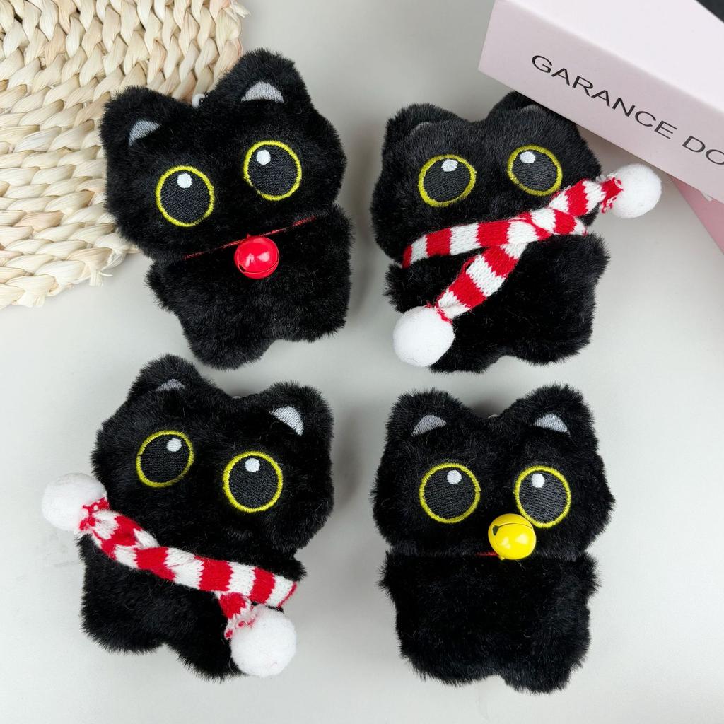 Mini Cute Black Cat Plush Toy Cartoon Kitten Keychain Backpack Decoration Accessories Soft Stuffed Doll Birthday Christmas Gifts