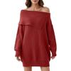 Women's Folded Collar Off-Shoulder Long-Sleeve Knit Dress