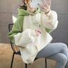 Women's Velvet Thickened Contrasting Color Sweatshirt Hooded Lazy Style Autumn and Winter Korean Style Student Patchwork Jacket