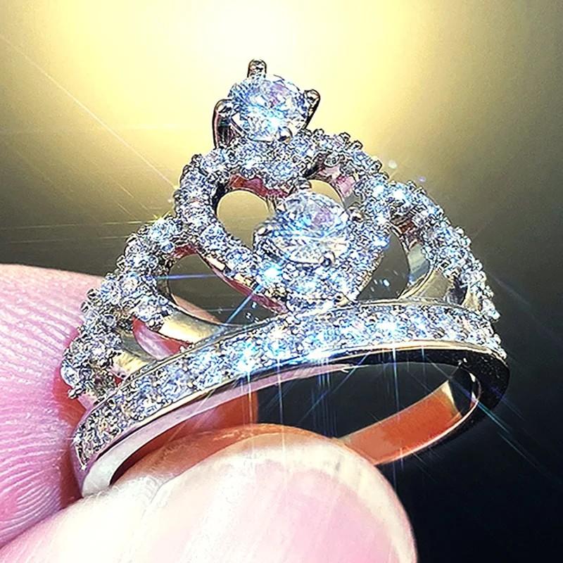 Huitan Fancy Crown Women Ring Best Anniversary Girl Gift Elegant Female Dance Party Trendy Jewelry Rings