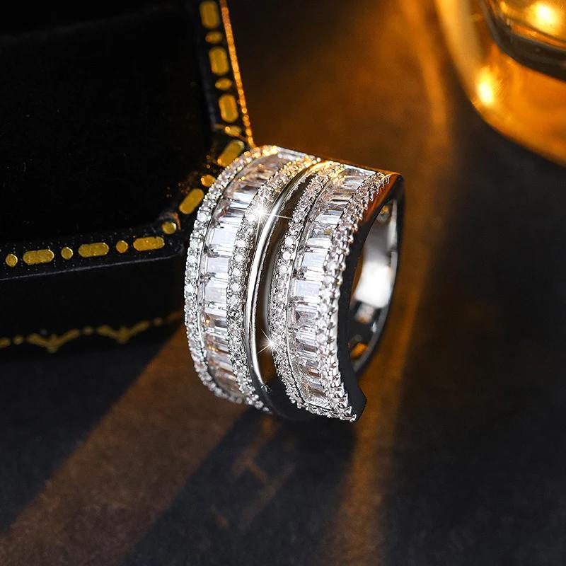 Luxury Full Diamond Ring for Women 925 Plated Sparkling Princess Cut Band Elegant Stackable Jewelry Bridal Party Gift