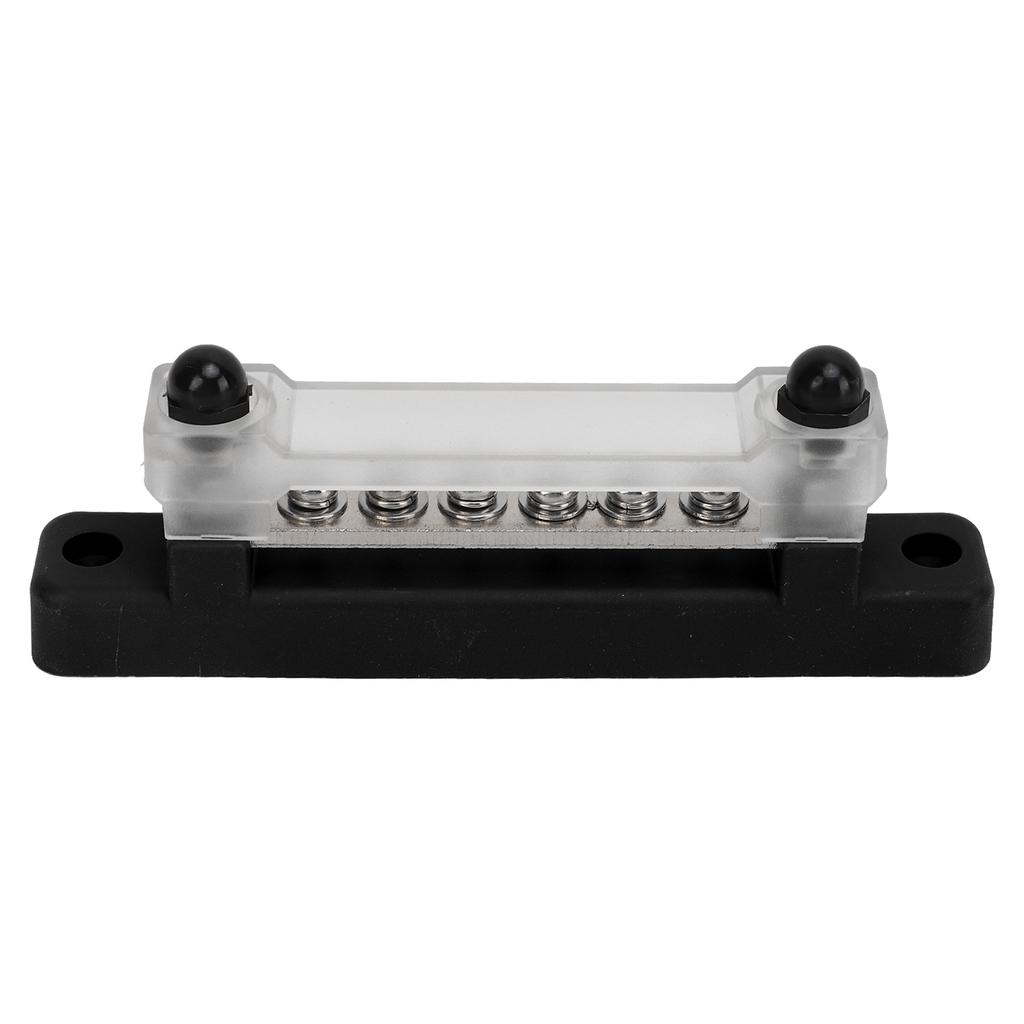 6 Terminal Bus Bar with Cover 48V 150A 2 Studs Power Distribution Block for Car Boat Marine Caravan RV Black