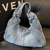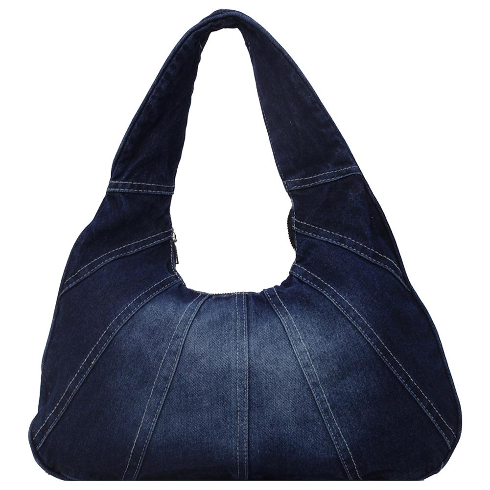Women Denim Shoulder Bag with Zipper Hobo Bag Trendy Underarm Purse With Pocket Clutch Bag for Work Travel Shopping