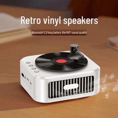 Retro Mini Portable Bluetooth Speaker with Record Player Design and Subwoofer