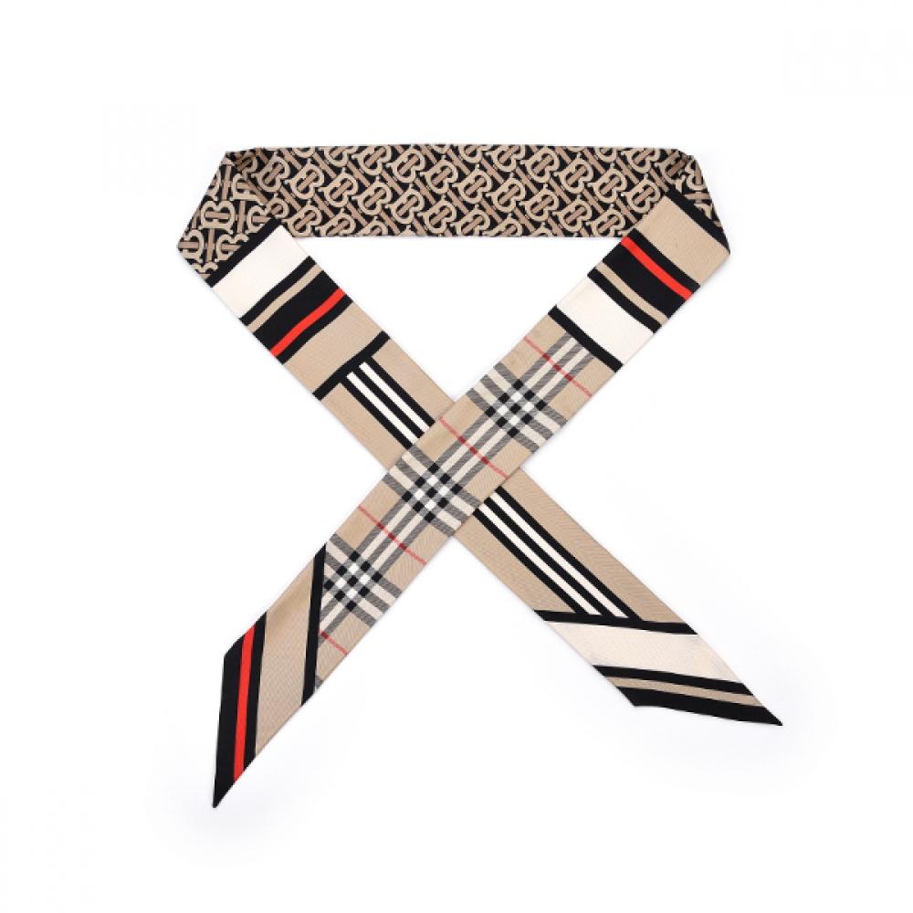 Burberry 8037017 A7026 Check Tb Monogram Icon Stripe Twily Silk Scarf