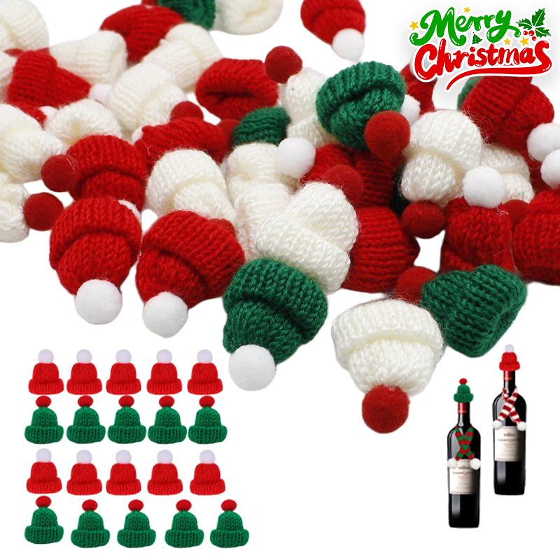 Cute Christmas Decoration DIY Mini Christmas Knitted Hat Plush Yarn Finger Cap Mini Red Christmas Santa Claus Hat Home Decor