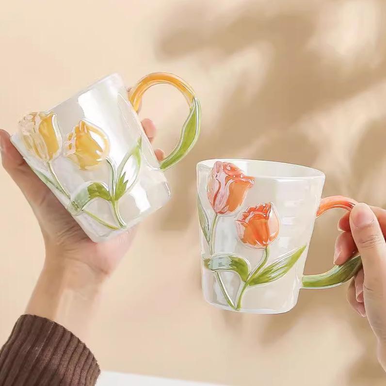 Color: Pearlescent glaze pink, pearlescent glaze orange, pearlescent glaze blue, pearlescent glaze yellow, tulip pink, tulip orange, tulip blue, tulip yellow, gift box set [Note style]