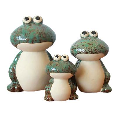 [S.T.S.G] Frog Figurine, Ceramic Ornament, Interior Decoration, Gift, Lucky Charm, Feng Shui, Entryway Ornament (Frog Family (Green))