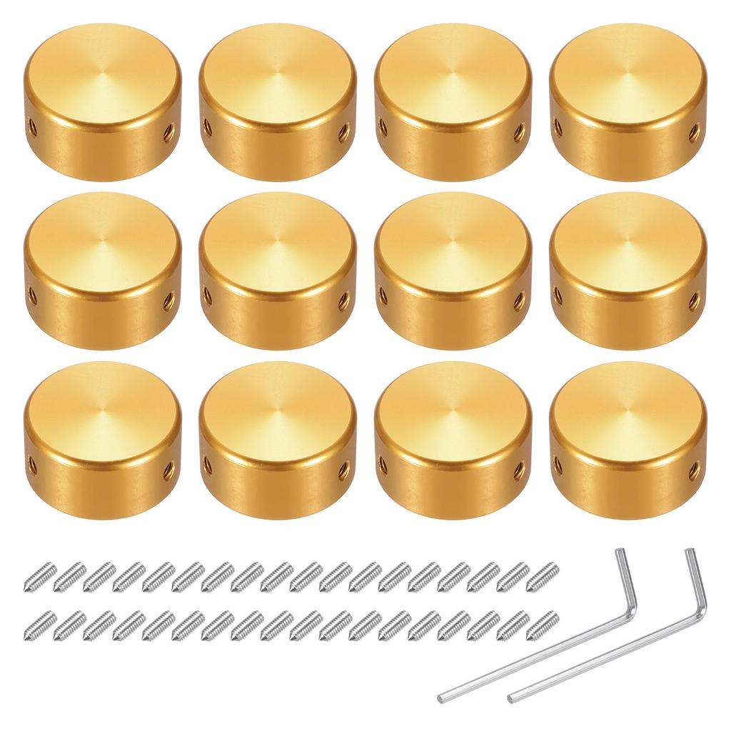 Uxcell 12pcs Foot Switch Guitar Pedal Button Metal Foot Switch Top Covers for Inch Guitar Effect Pedal Yellow Toppers, Caps, 3/8 Buttons,