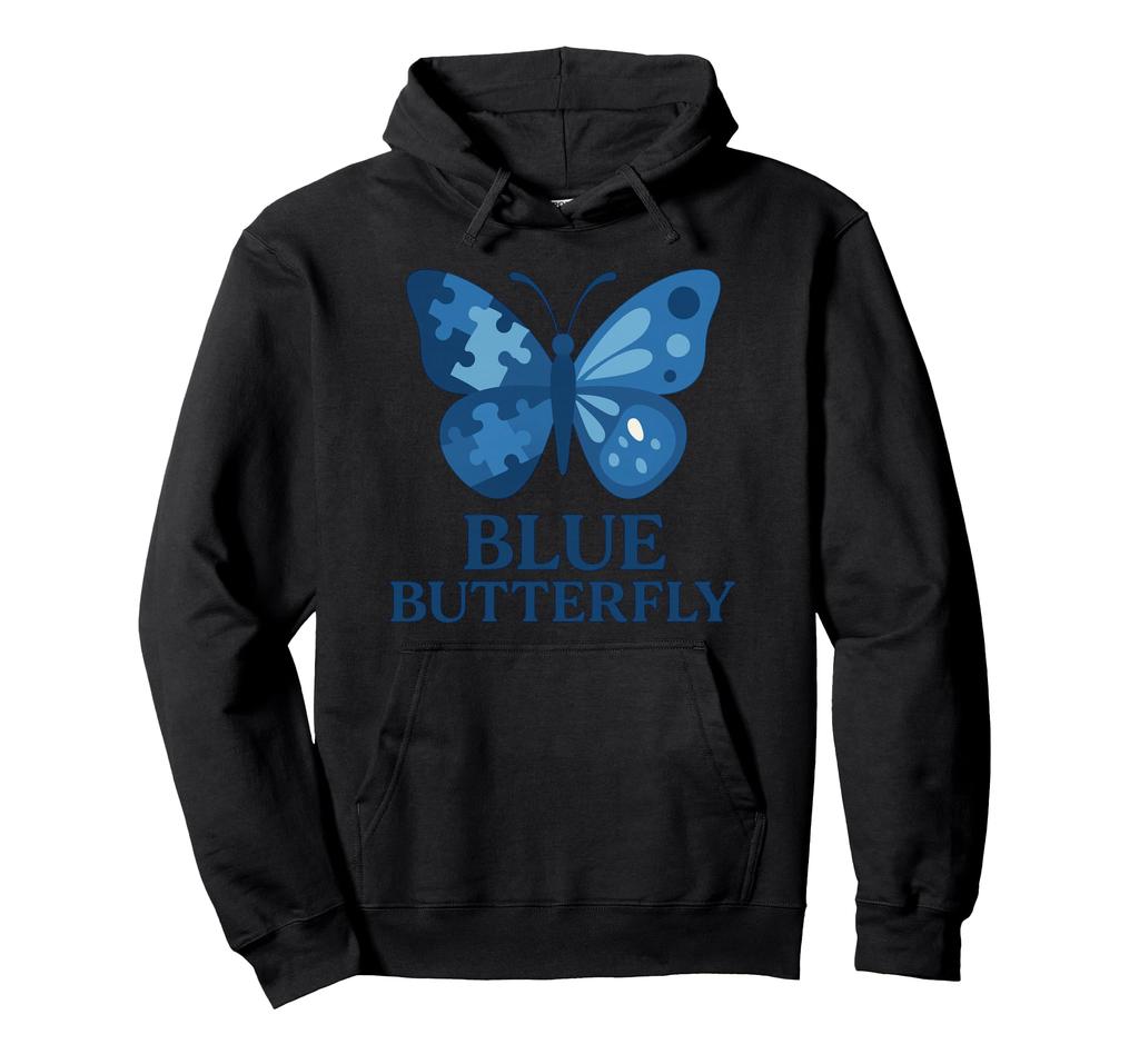 A beautiful blue butterfly with a puzzle pattern symbolizing autism awareness, transformation, and the beauty of individuality.