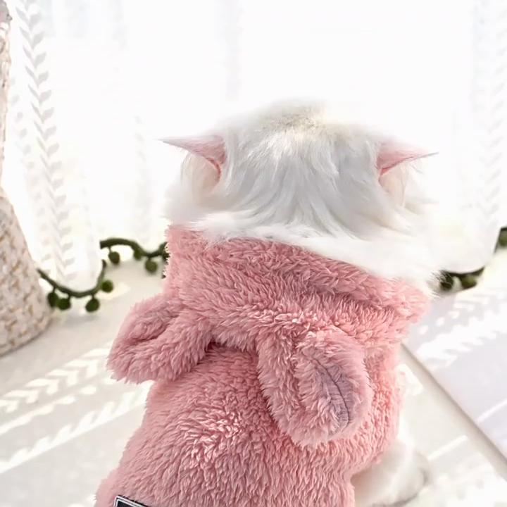 Bunny Ear Fluffy Pet Vest for Cats & Small Dogs - Soft Warm Cat Clothing (3 Colors: Pink/Beige/Grey)