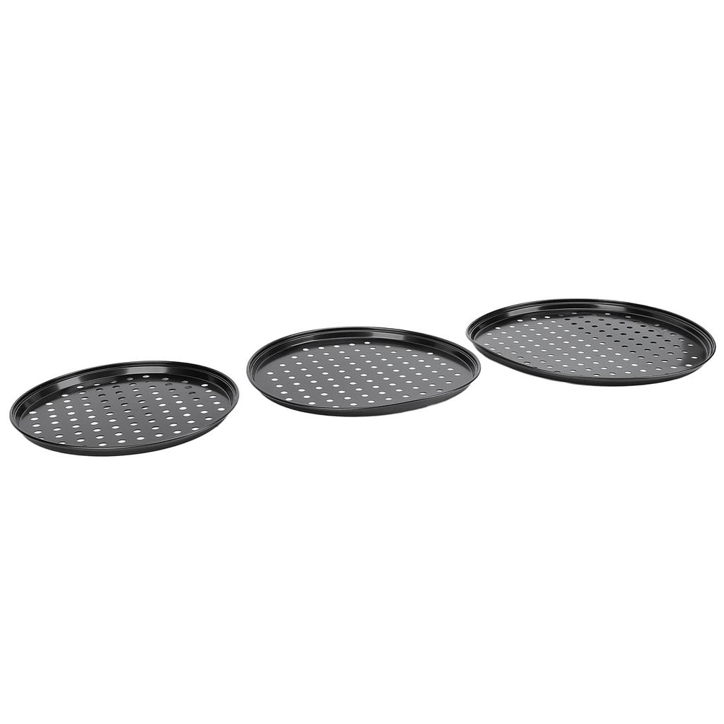 3pcs Carbon Steel Pizza Pan Professional Prevents Stick Round Pizza Tray with Holes for Oven Restaurants and Home