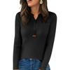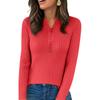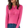 Women's Fashion Solid Color V-neck Long Sleeve Button Loose Bottom Knitted Sweater Top