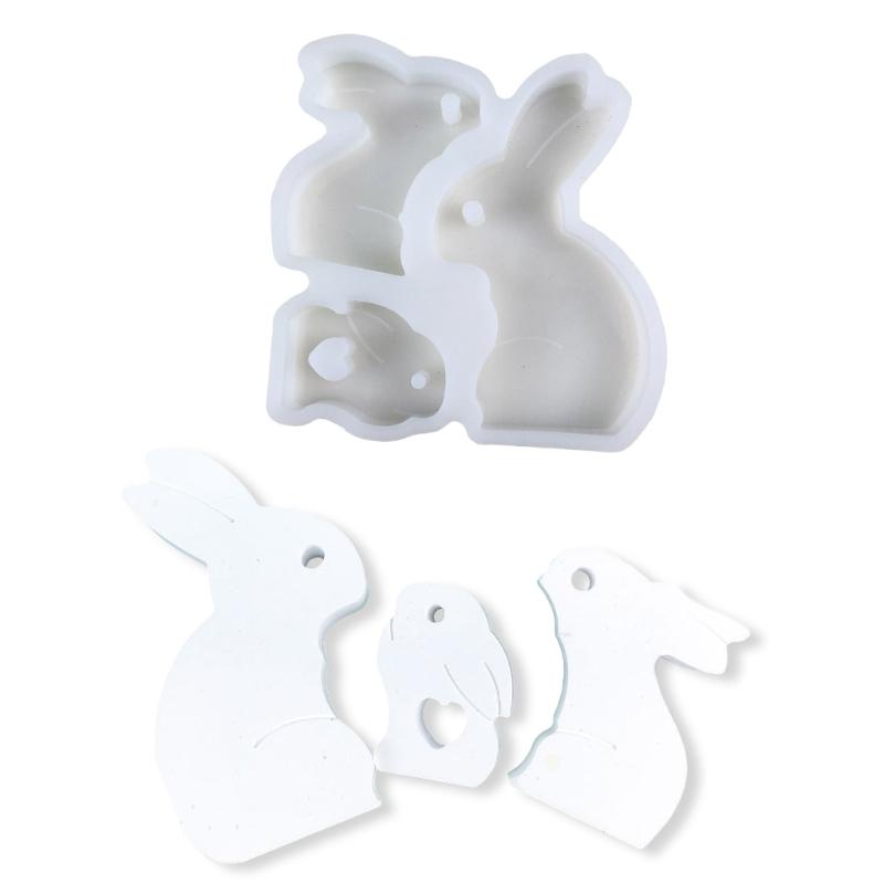 Desk Ornament Mould Flexible Silicone Mold for 3 Rabbit Family Figurine Decoration Gypsum Mold Jewelry Making Supplies