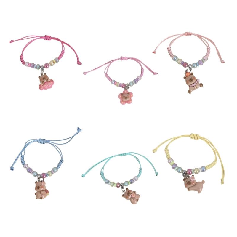 Colorful Macaron Rope Bracelet For Kids With Cute Cartoon Capybara Designs And Adjustable Soft Strap Perfect For Gifts