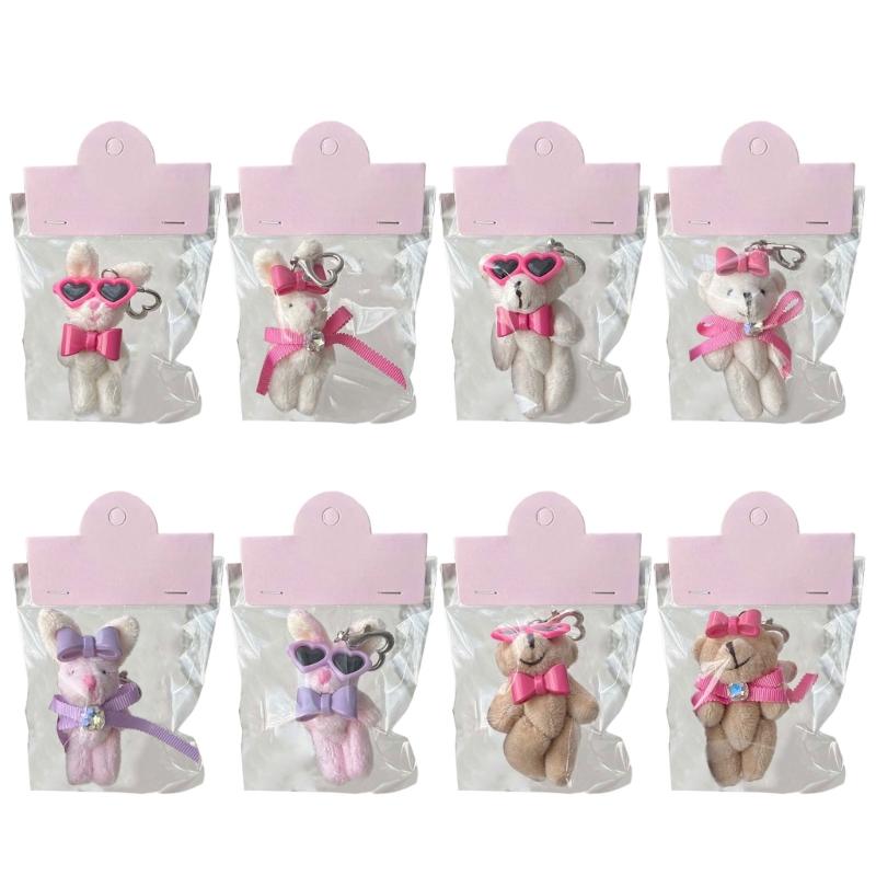 Cute Bear/Rabbit Keychain Soft Plush Keyring Adorable Bag Pendant for Women Girls Lovely Couple Key Rings Ornament