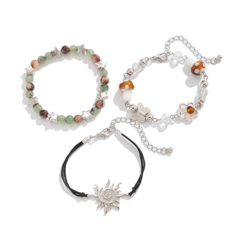 3 Pack Adjustable Sun Bracelet Butterfly Beaded Bracelet Set Fashion Crystal Jewelry Rope Bracelet Gift for Woman Girl