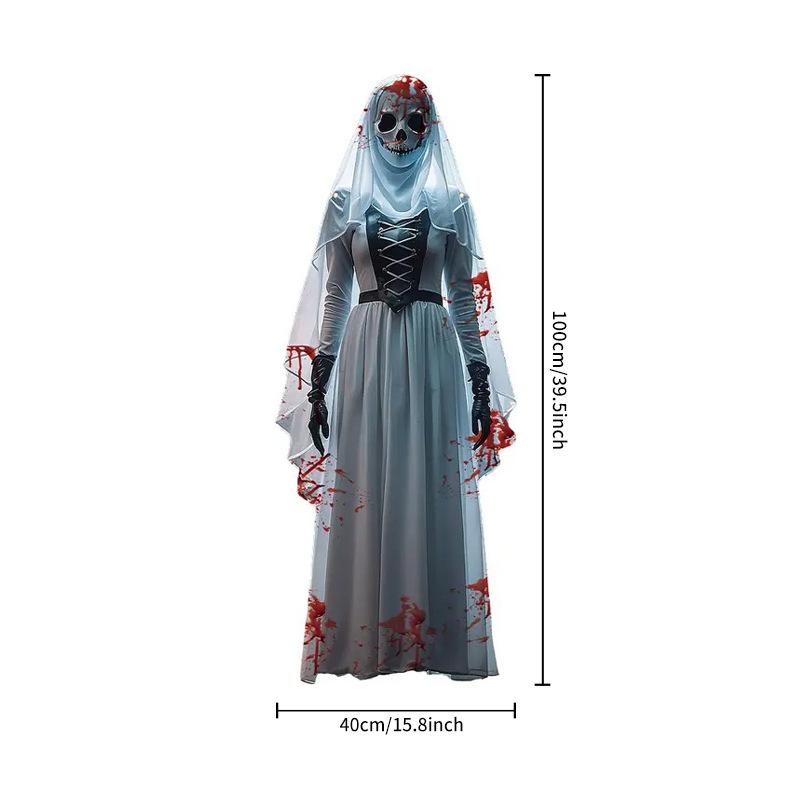 2D Horror Skull Bride Background Cloth Halloween Party Scary Atmosphere Haunted House Indoor Outdoor Festival Decor Supplies 1PC