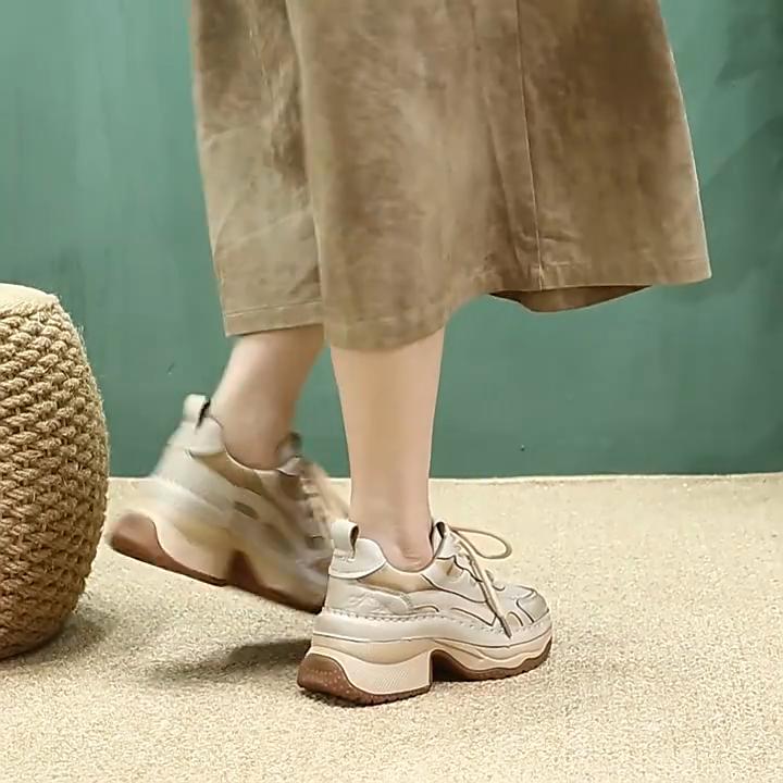 Johnature Casual Thick Heel Lace-up High Heel Pumps Versatile Comfortable And Lightweight Women's Shoes
