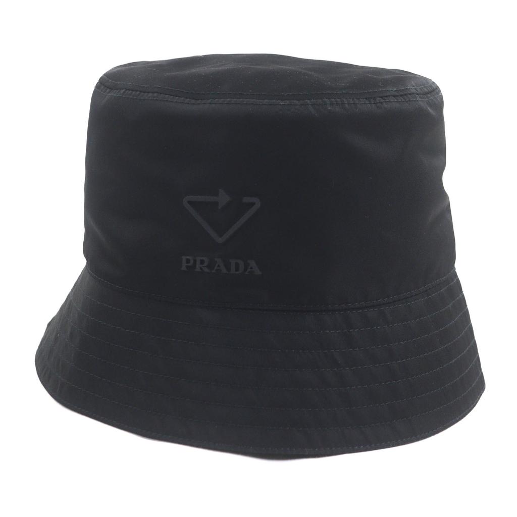 Excellent PRADA Hat With Logo Hat Bucket Black Recycled Polyamide Mens S 2HC137 Used