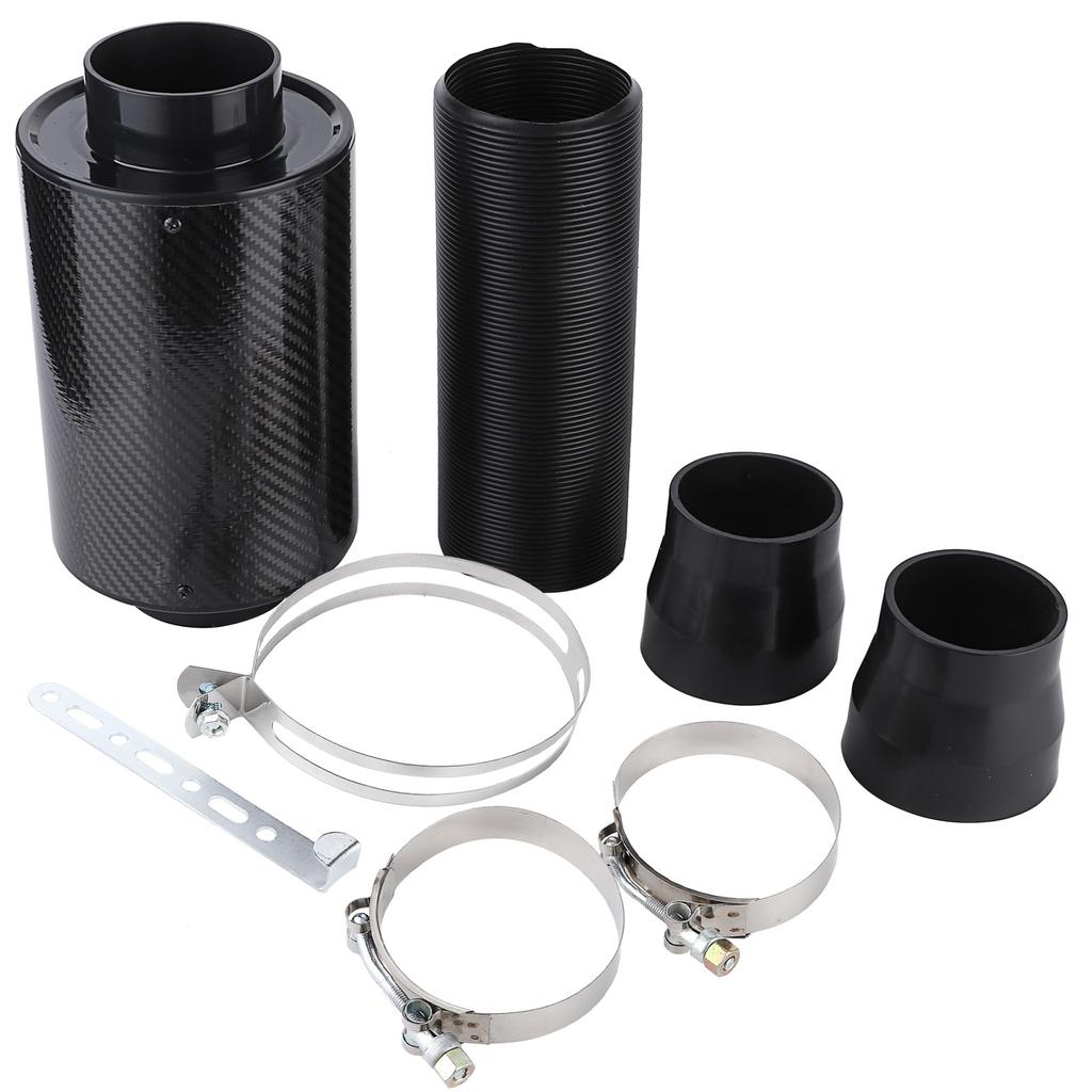 Universal Car 3 Carbon Fibre Cold Air Filter Feed Enclosed Intake Induction Pipe Hose Kit