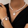 Light Luxury Pearl Bracelet Necklace Set Alloy Love Collarbone Chain Love Pendant Necklace Set
