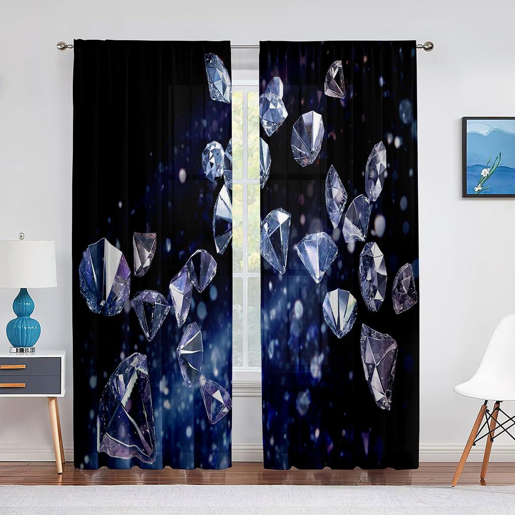 Falling Jewelry Diamonds On The Black Background Tulle Curtains for Living Room Bedroom Decor Chiffon Sheer Voile Window Curtain