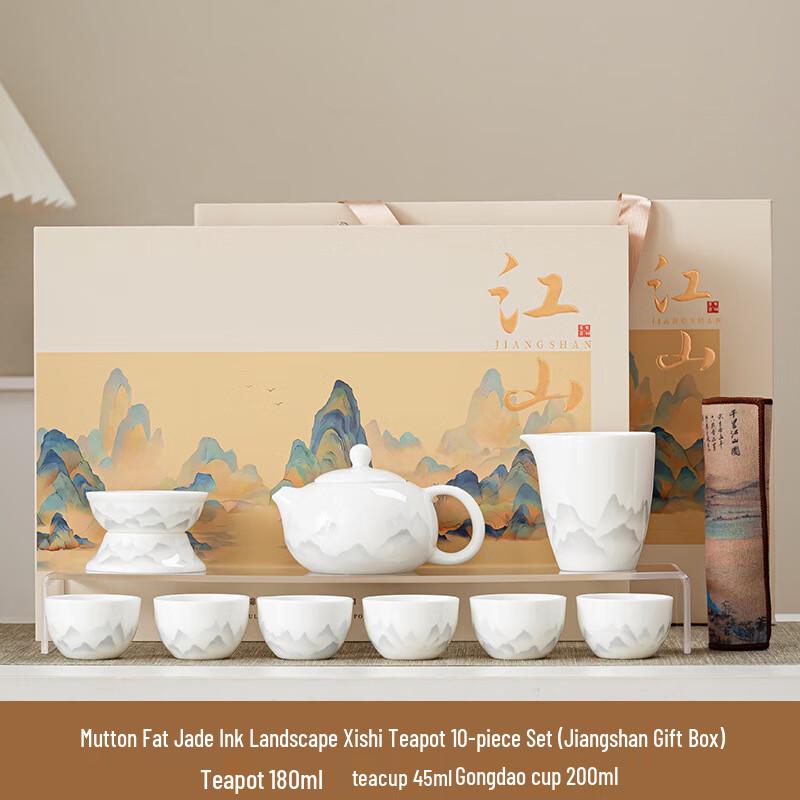 Xunyi Wisteria Ink Landscape White Porcelain Tea Set