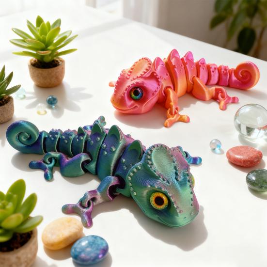 This articulated chameleon toy is crafted from high-quality, eco-friendly 3D printing materials, ensuring durability, safety, and long-lasting use. Its wear-resistant and sturdy construction makes it ideal for both children's play and decorative display. Featuring a unique articulated joint design, the model can be posed in various creative ways, encouraging imagination and exploration of the natural world.