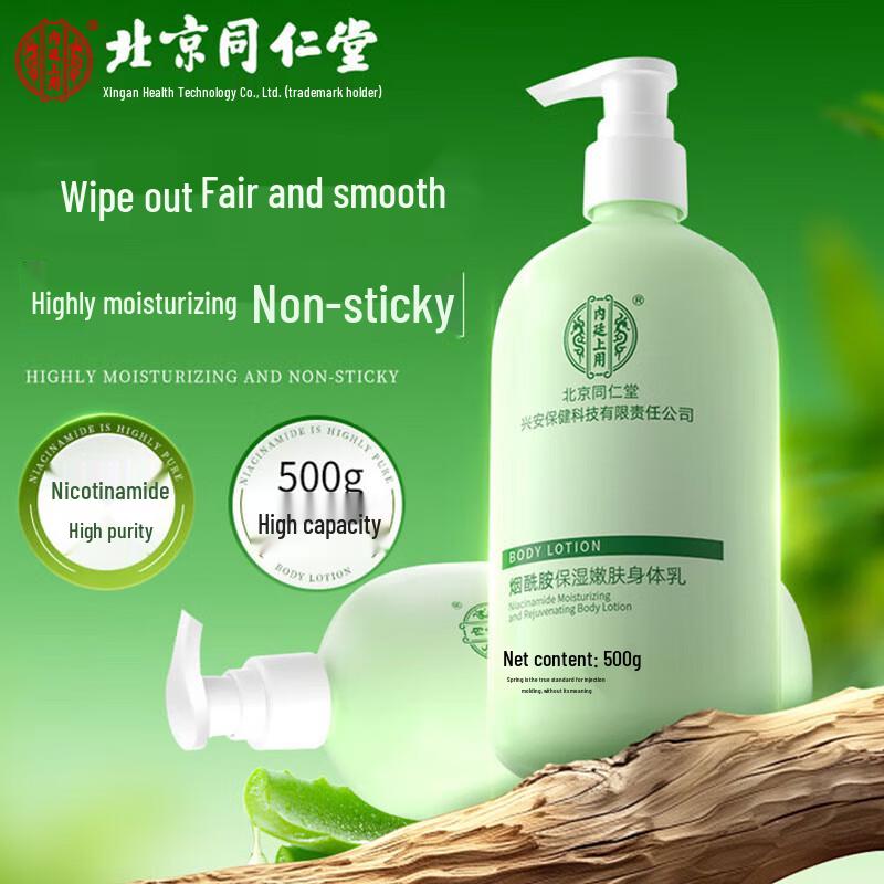 Experience deep hydration and relief for dry, itchy skin with Tong Ren Tang's Niacinamide Body Lotion. Formulated to moisturize and replenish, this 500g lotion leaves skin feeling soft and smooth with a light, refreshing scent, suitable for all skin types.