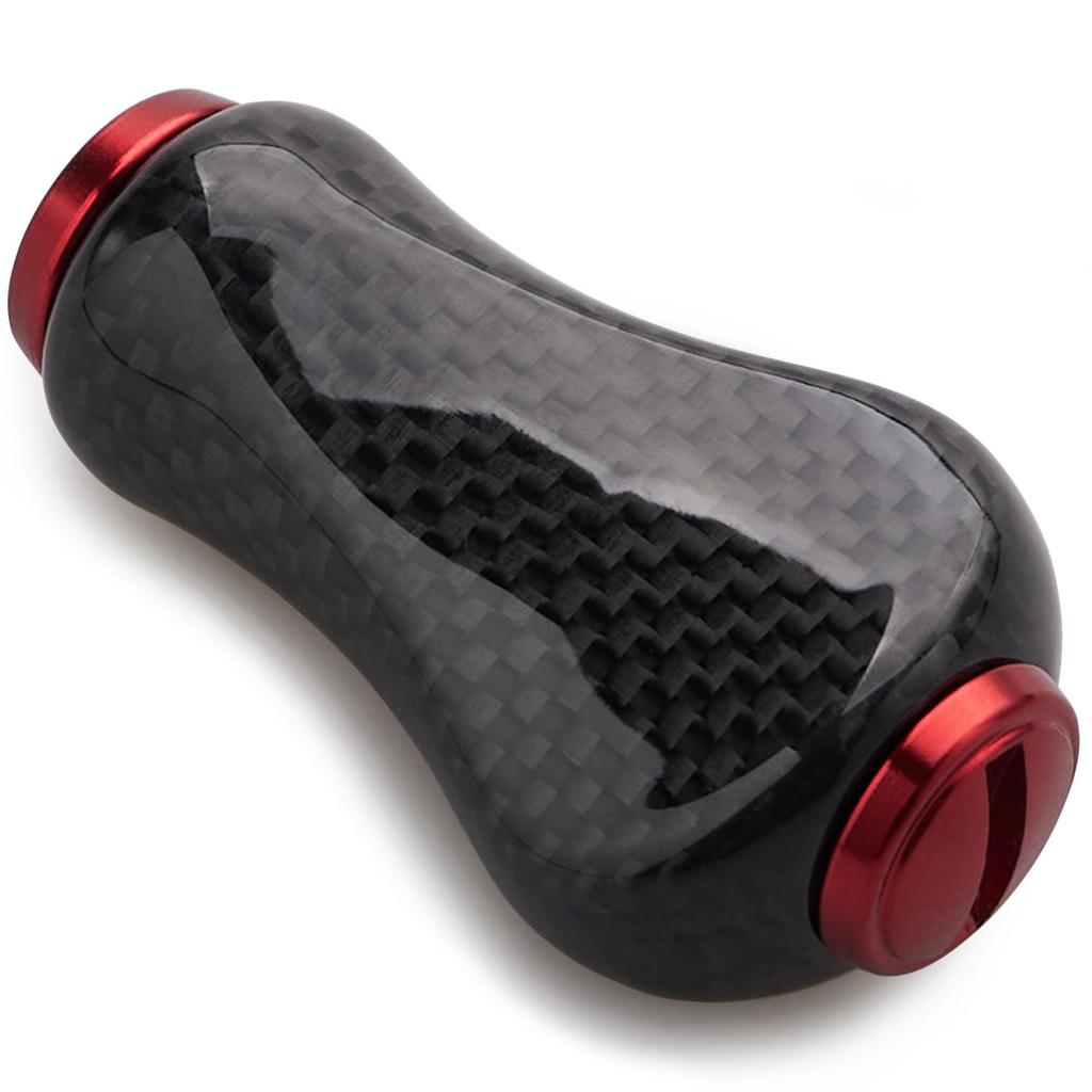 [Features] Weight: 4.7g. Beautiful carbon texture surface, 1.5K carbon material, lightweight and strong knob. (Improved model: Improved cap tightening issue.) [Size] Diameter: 20mm, Length: 37.5mm, Thickness: 14mm [Weight]: 4.7g [Material]: 1.5K carbon. [Accessories]: 2 stainless steel bearings, 5 washers, 1 bushing. [Compatible Models]: Compatible with Shimano (A-type) and Daiwa (S-size) spinning reel handles and baitcasting reel handles. 60-day warranty (excluding accessories) with unconditional returns and exchanges within 60 days. The compatible handle knob models are not limited to those listed below. If you have any issues, please contact us by email.